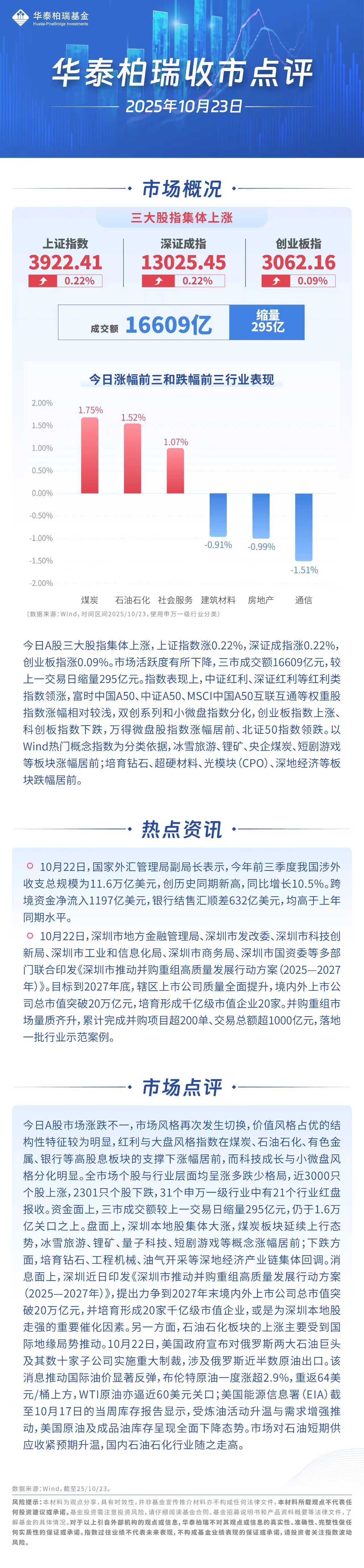 【收市点评】A股市场涨跌不一,三大股指集体上涨