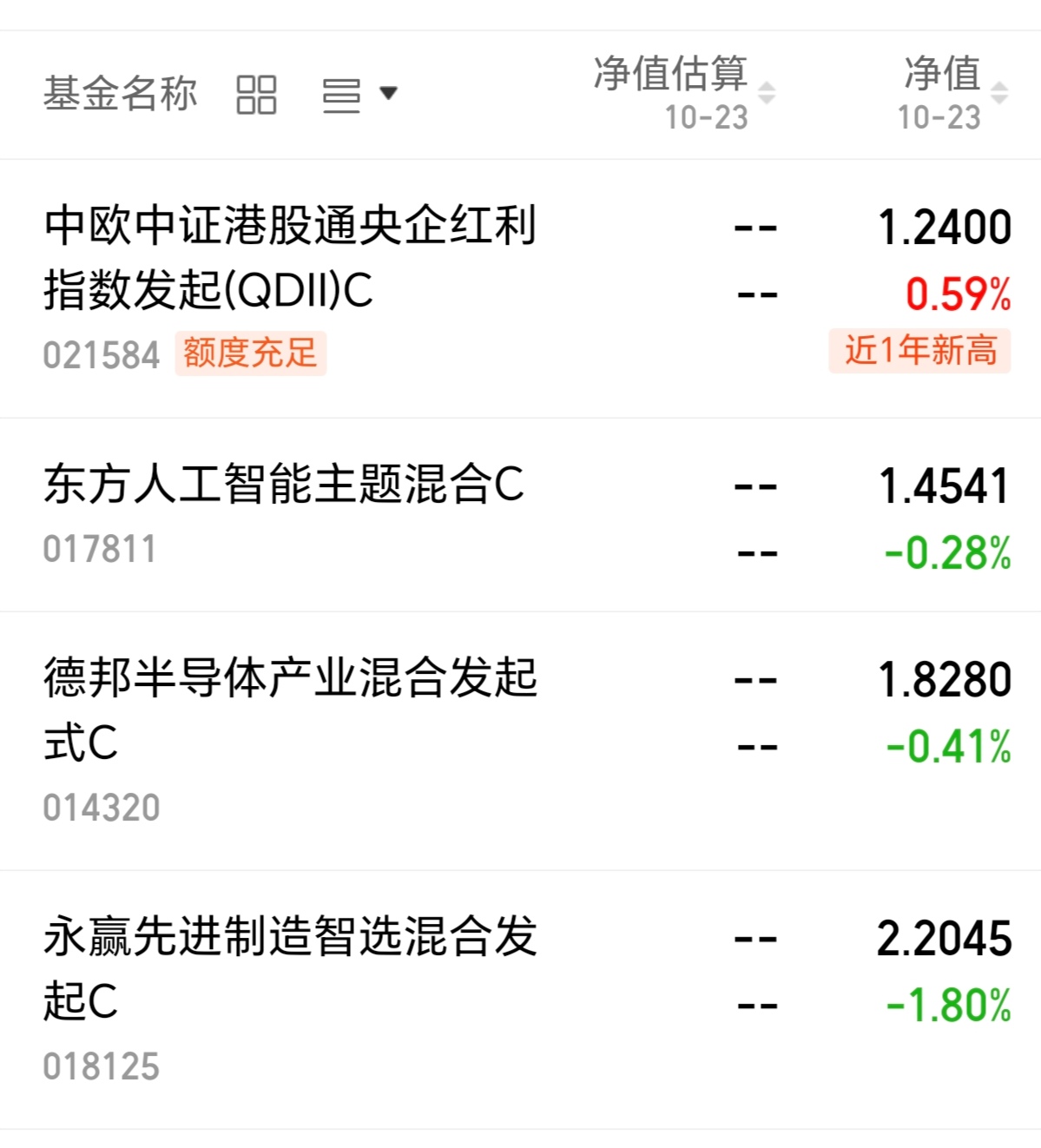 $中欧中证港股通央企红利指数发起(QDII)C(OTCFUND|021584)$涨幅0.59%