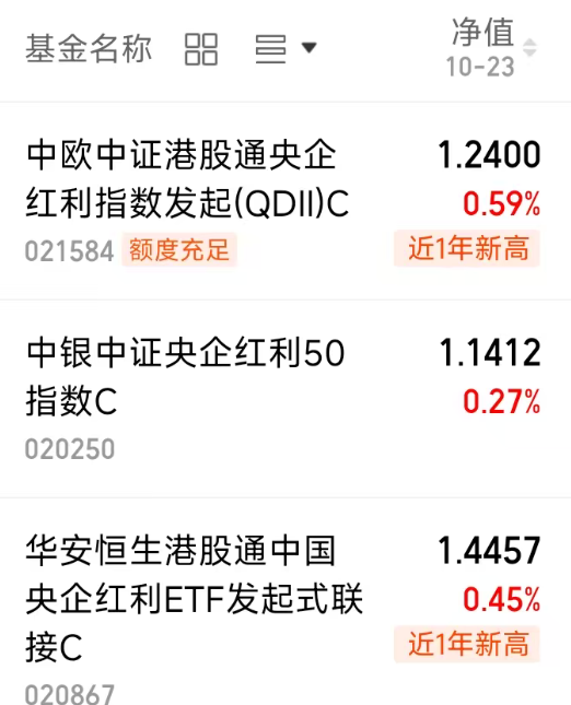 $华安恒生港股通中国央企红利ETF发起式联接C(OTCFUND|020867)$+0.45%