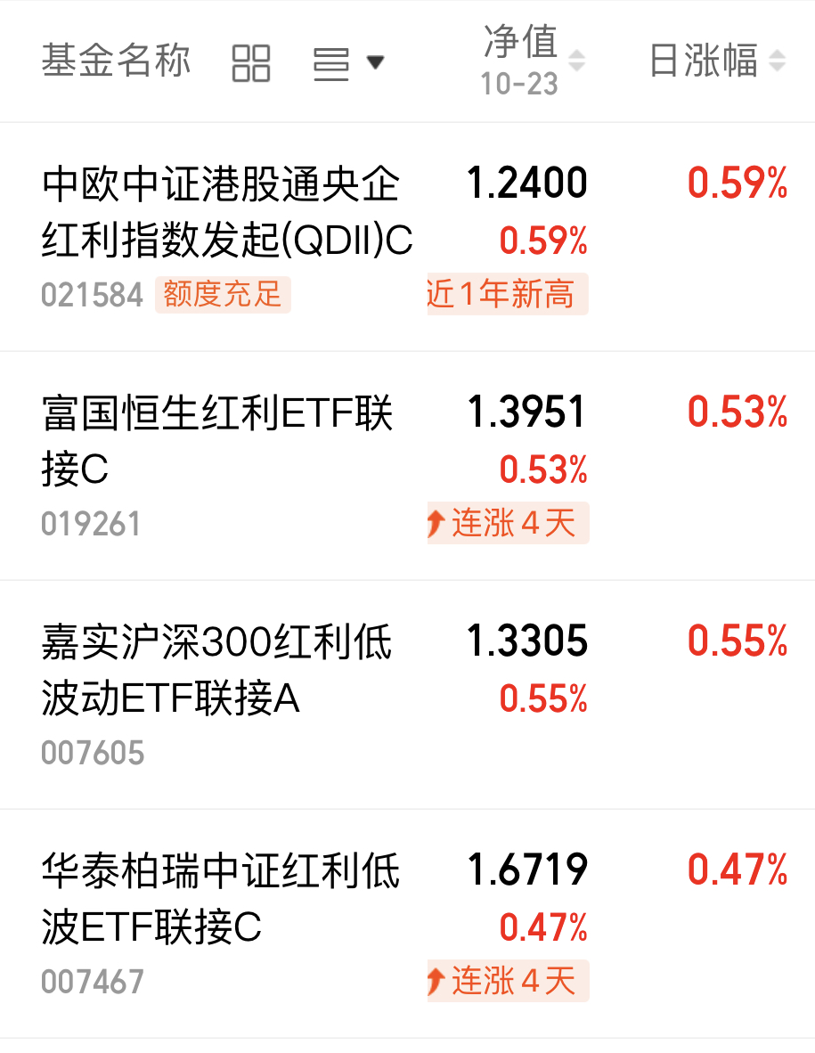 $富国恒生红利ETF联接C(OTCFUND|019261)$今晚上涨0.53%