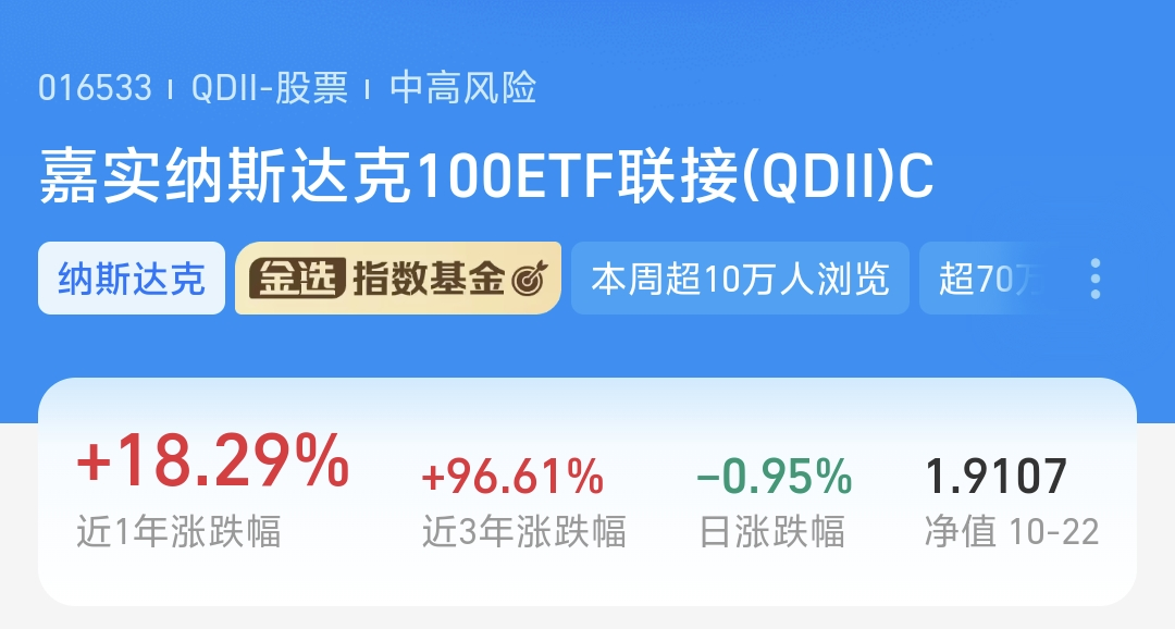 注意到$嘉实纳斯达克100ETF发起联接(QDII)C人民币$ 单日申购额度是5000元,同时它的长期业绩表现也挺亮眼的。这只产品紧密跟踪纳斯达克100指数,里面都是像苹果、英伟达这样全球领先的科技公司。