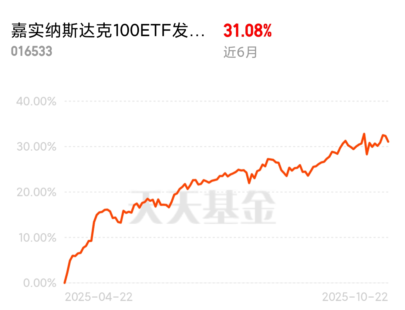 最近美股科技财报季刚开闸,台积电这类巨头业绩一个比一个猛,营收、利润全超预期;反观A股近期波动有点大,这么一对比,美股科技的稳定性和性价比更突出。加上下周公议息大概率降息,对美股行情是实打实的利好,后续肯定还能涨,现在按这个限额配置,后续科技赎回的收益值得期待。$嘉实纳斯达克100ETF发起联接(QDII)C人民币$