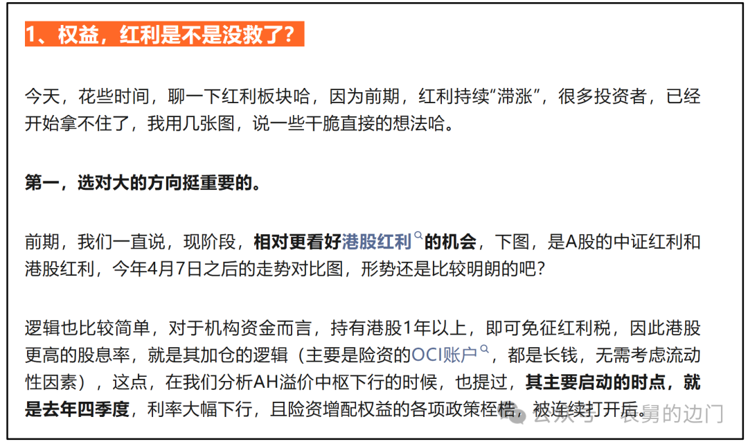 年内来看,港股央企红利涨幅已经超过21%,而A股的中证红利全收益指数的涨幅是3%出头,港股红利的优势比较明显,具体逻辑,咱们在9月份的《深度聊一下红利》里,聊过了,感兴趣的,可以回过头去,再看一次。