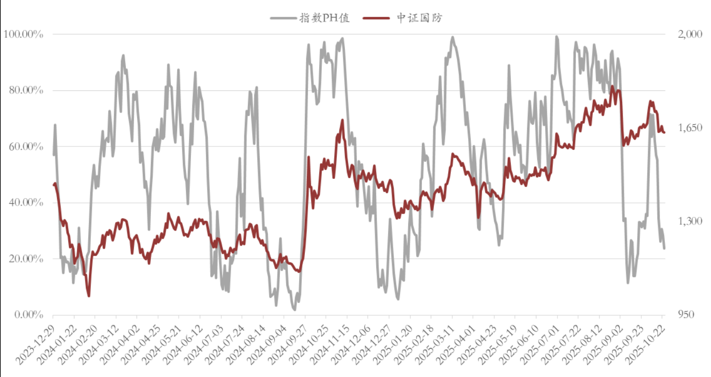 中证国防指数成交额进一步萎缩至215亿,带动情绪指标进一步下行至23%左右,非常接近20%的高性价比区域。
