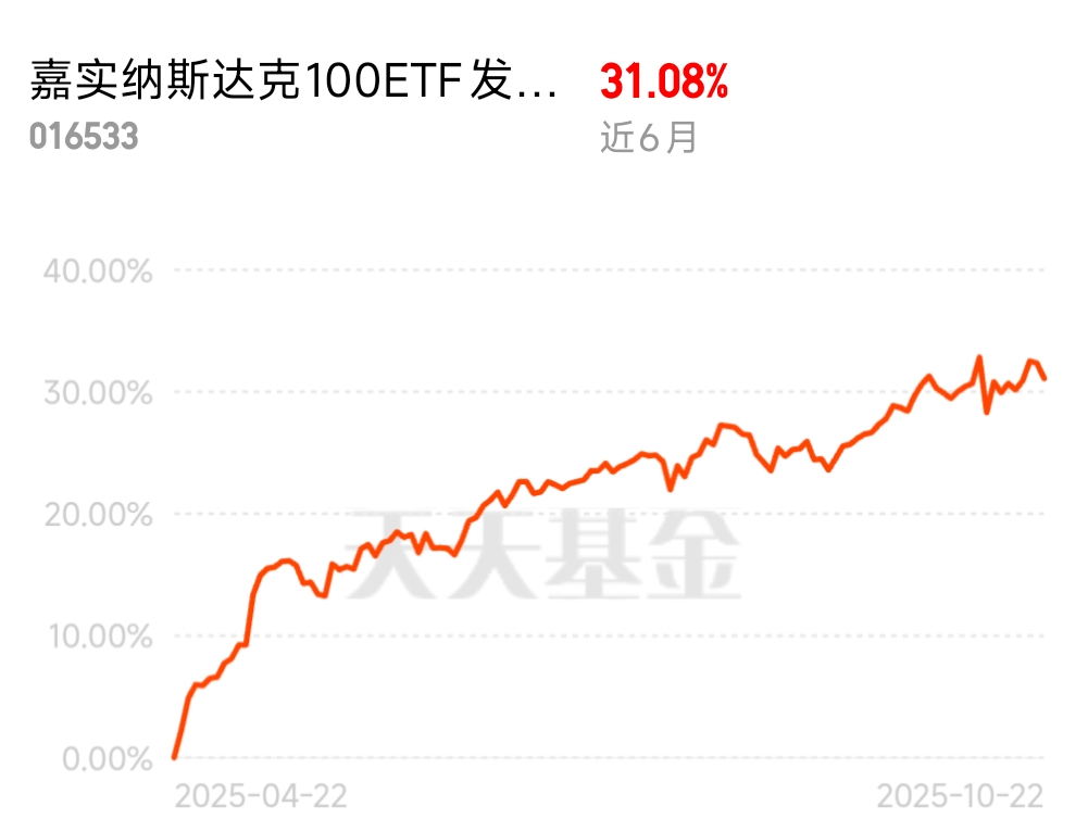 昨晚美股三大指数集体收涨,看来要留意投资风向的转变啦,$嘉实纳斯达克100ETF