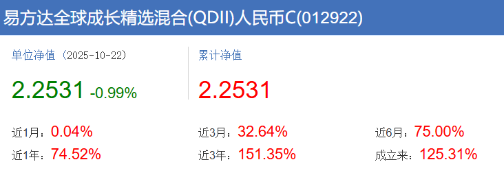 不知不觉又到了10月下旬,咱就说最近行情大家吃上肉了么?我看最近的市场行情表现还是科技赛道比较香~咱这一波也不准备错过,我看易方达-全球成长精选混合C这个不光配置单一赛道,基金经理可以配置A+H+美股,从而把握住多个市场的科技成长行情~最近走势这么稳还是继续跟着基金经理安心吃肉咯