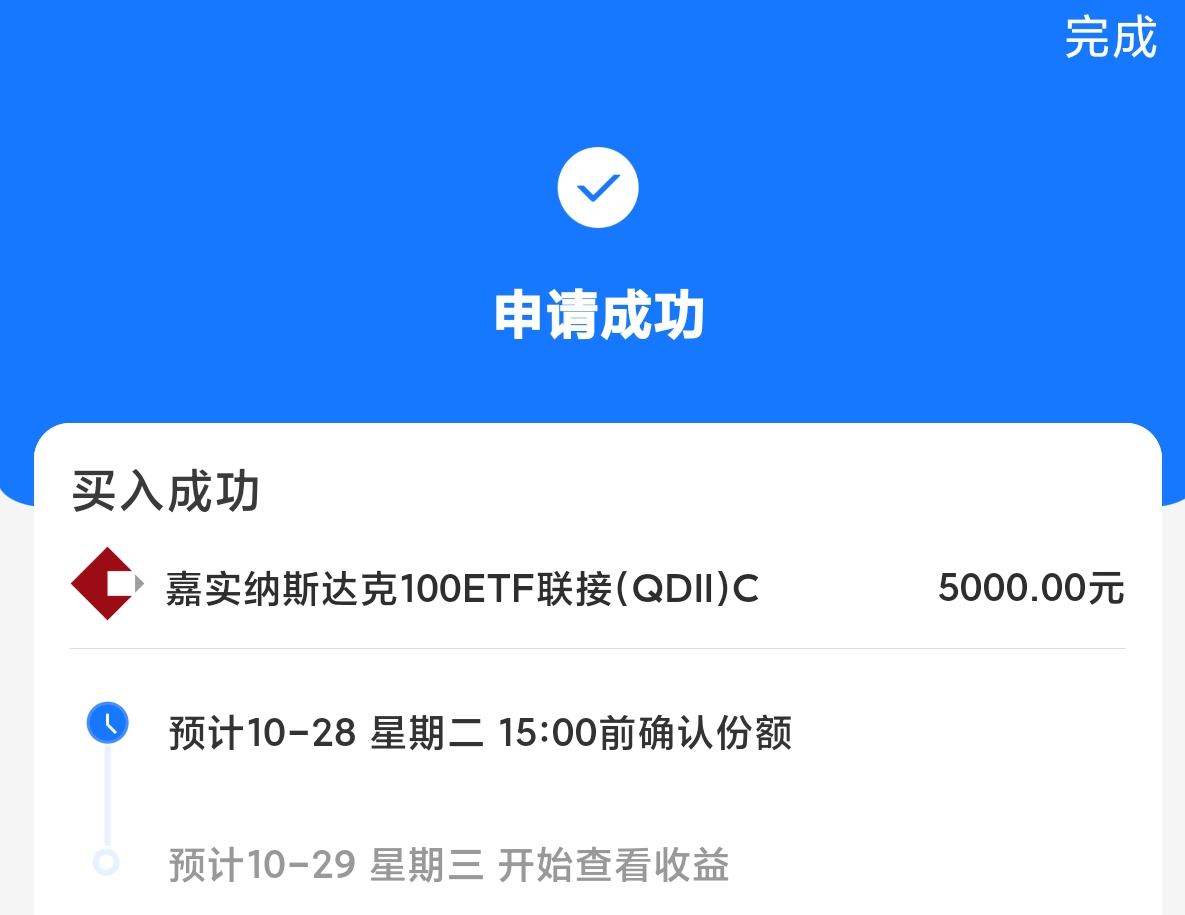 终于不用继续小额定投啦,嘉实纳斯达克100作为全市场中额度最高的单品,可以单日拥有5000额度,远超同类基金,美股是公认的慢牛,那么咱们不想100又100的加,就要选择额度高的产品!中美局面有所缓和,美股又有希望了!姚姚先打入5000顺势而为!