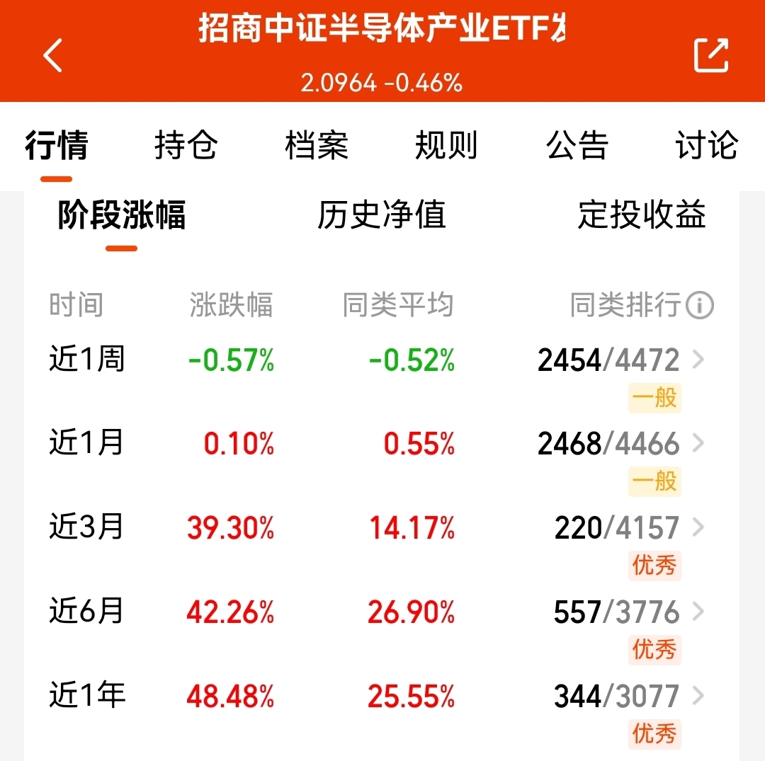 半导体指数目前大涨超3个点,我也比较看好这支$招商中证半导体产业ETF发起式联接C$ ,跟踪半导体产业链,近3个月涨了39.30%,近半年收益也有42.26%了,跑赢大多数板块了;