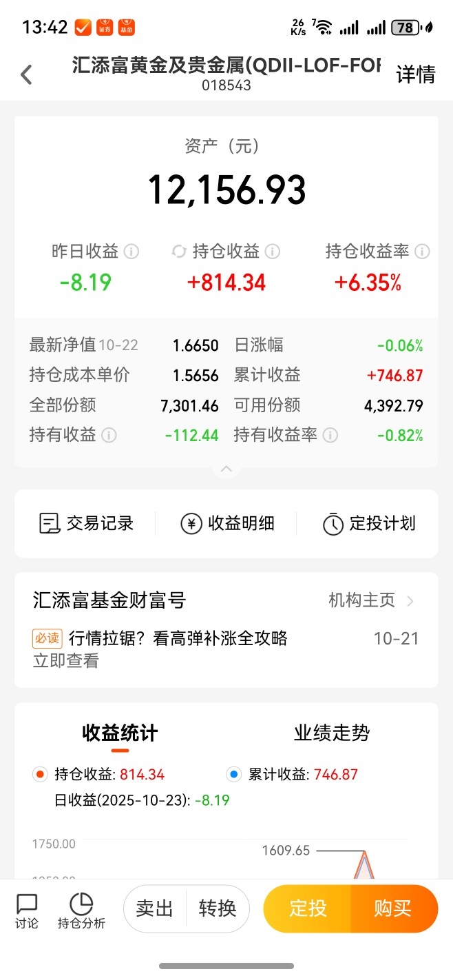 至于目前我持有的某个黄金及贵金属qdll基金的持有份额,其实在最近这些天的时候,都已经考虑陆续减仓卖出一半多一些持有份额资金了。