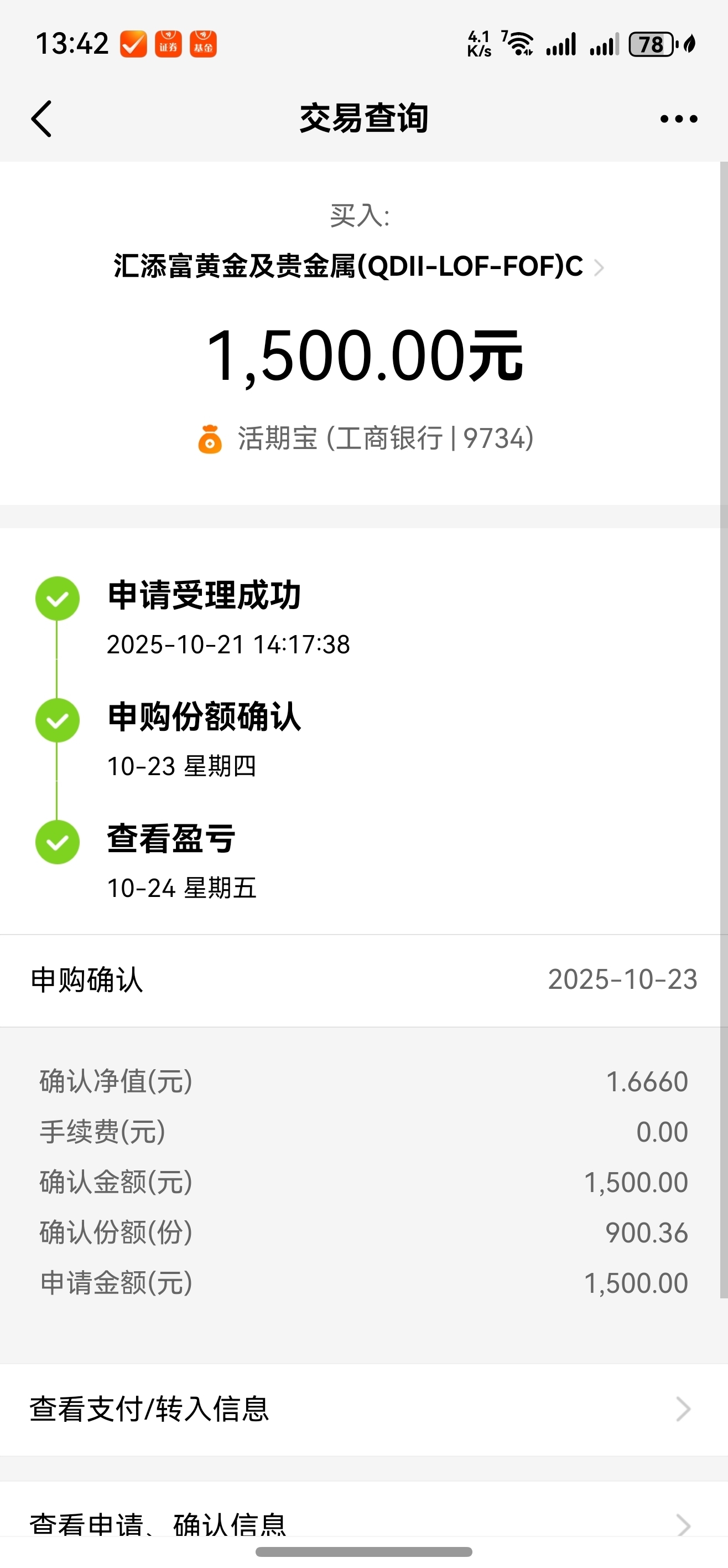至于目前持有的这个黄金及贵金属qdll基金,就只剩2笔不足7天的这部分持有份额资金了。