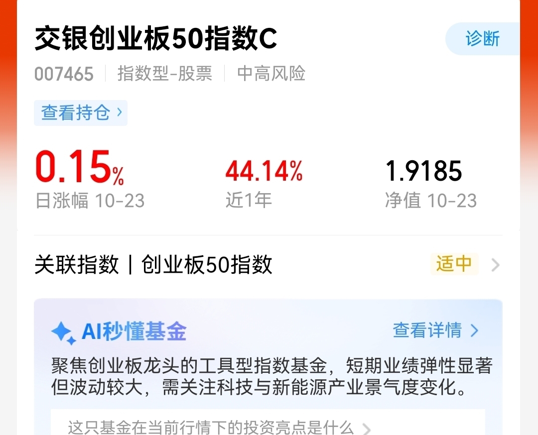 我在选择了“全仓买入”交银创业板50指数,盯科技医药赛道,有时候波动是暂时的,长