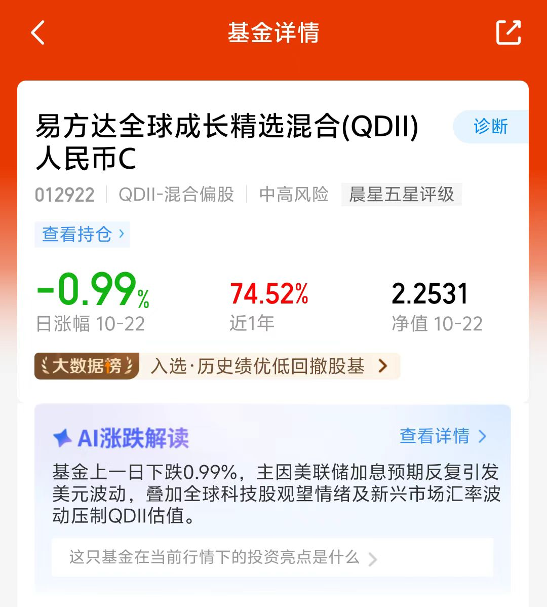 美股昨夜涨起来了,大A和港股今天表现也很不错,全球科技板块大涨,降息周期开启,全球科技类有望受益,美股机器人、AI有先发优势,A股部分资产在算力建设中不可或缺、港股的互联网巨头是最受益AI应用落地的,单一市场容易踏空,我准备全球化配置,易方达全球成长精选混合C持仓可投全球科技板块,近三个月涨了32.64%,近六个月涨了75%,业绩不错,我准备分批加仓了!