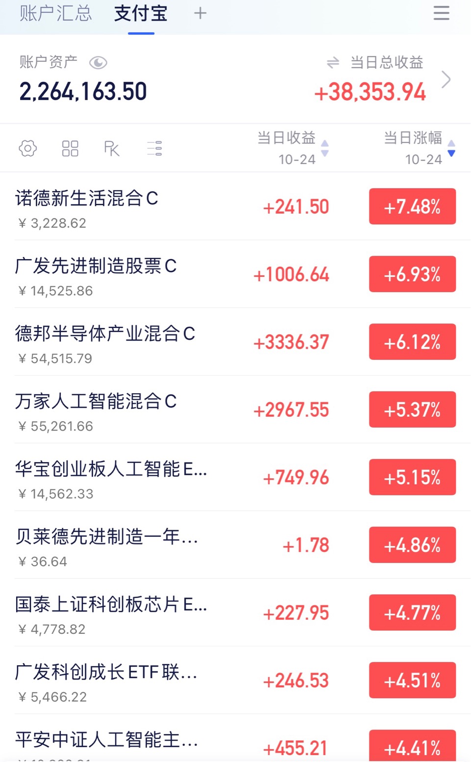 业绩上来看,这一年盈利43.65%,两年盈利了56.79%,三年盈利37.26%(数据来自蚂蚁财富,截至10月23日)不仅仅短期表现优秀,重要持续盈利能力强,短期表现优秀抓住板块节奏,中长期表现优秀才是硬实力体现。
