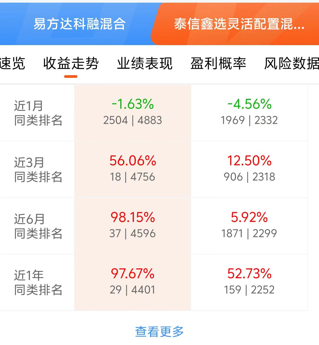 大盘今天继续上涨,大科技等板块表现都很不错,易方达科融混合持仓科技、新能源、军工轮动配置,近三个月涨了56.06%,近六个月涨了98.15%,成长行情各大板块轮动很快,这种均衡配置可以有效的分散风险,看好这个方向,我准备分批加仓了!