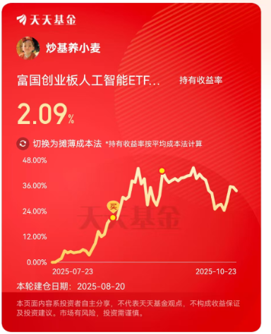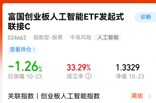 麦爸手里的$富国创业板人工智能ETF发起式联接C(OTCFUND|024663)$,可算跟上节奏了。麦爸持有收益率虽然不高,但要知道刚扛过10月大跌还是正收益;加上今天的涨幅预估5个点;很厉害的啦!