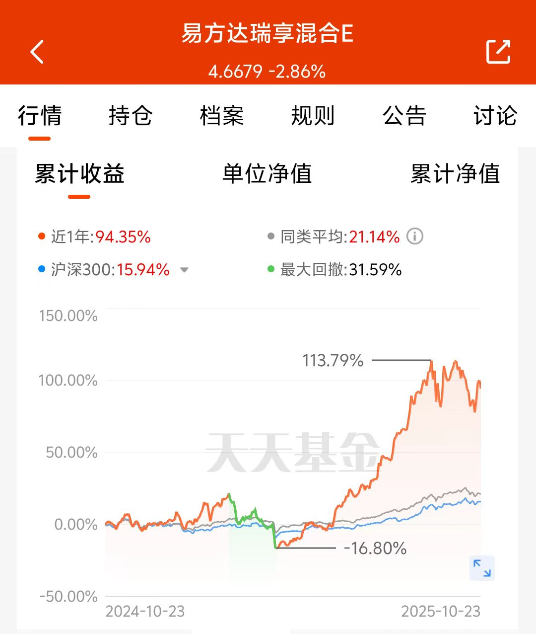 大盘今天反弹上涨,大科技等板块今天大涨,易方达瑞享混合E持仓CPO板块,经理调仓能力不错,成立10年紧密把控成长机会,近六个月涨了115.02%,业绩不错,近期市场波动比较大,我还是相信经理调仓能力,准备分批加仓一波了!