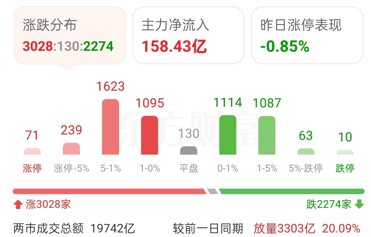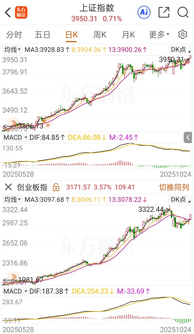 1、上证续创近10新高,10月9日3936高点成交1.22万亿,今天仅8585亿,有点无量空涨的意思,尽管大盘总体较周四量能放大两成,却难掩底气不足的窘境,创指大涨3.57%,较10月9日6582亿萎缩1285亿,两市总量2.65VS1.97万亿,人气明显衰减,所以能否修复持续上行必须打一个大大的问号。