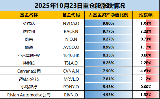重仓股涨跌情况不代表基金业绩表现,请以每日更新的实际基金净值为准。