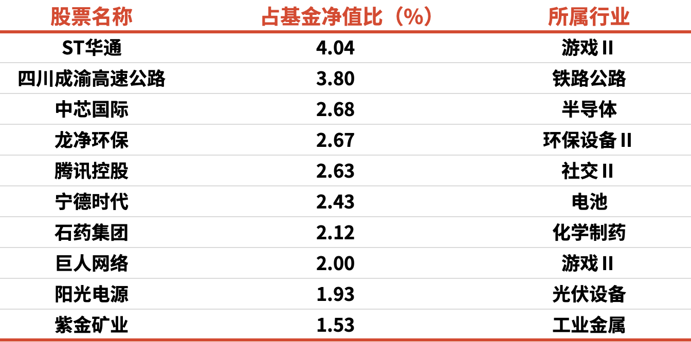 产品最新前十大持仓如下: