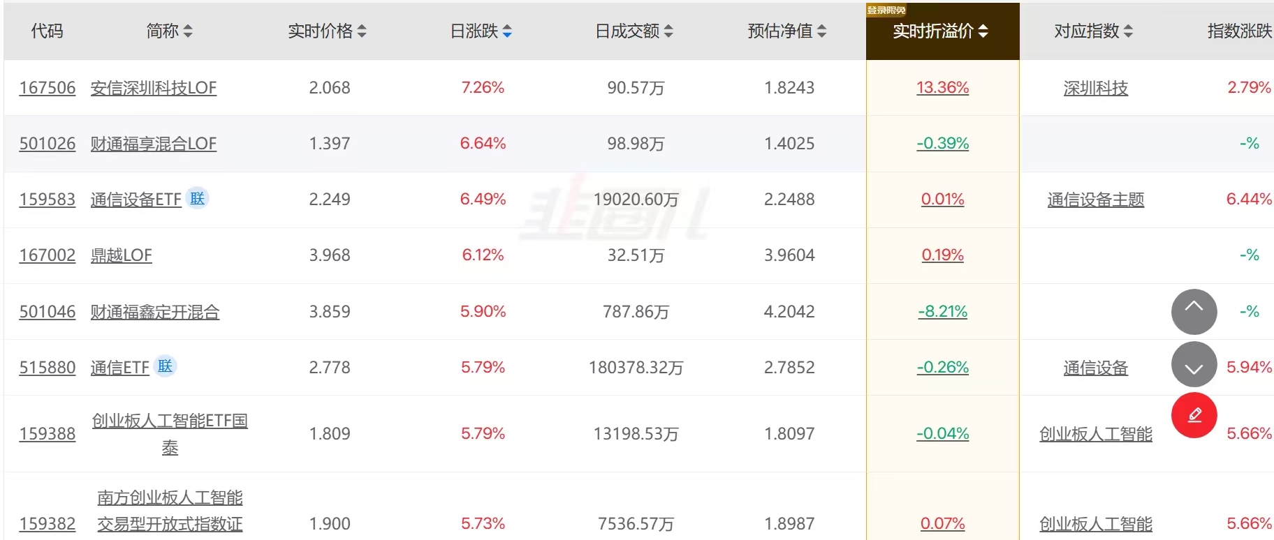 今天市场玩的就是溢价心跳!高溢价科技LOF疯狂炒作,稳健混合基小幅跟涨;跌幅榜上债基意外大跌,煤炭周期股回落,小盘股集体调整。
