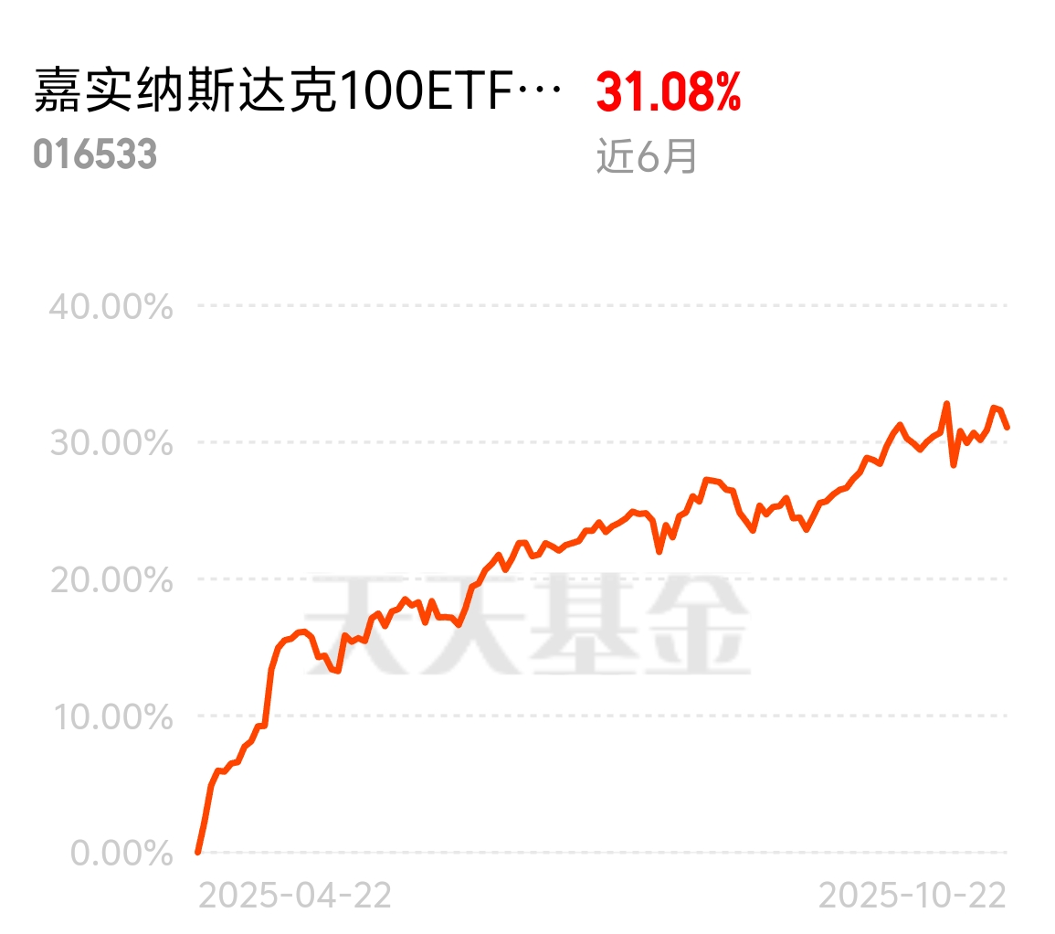 #高盛看多A股:慢牛正形成 还有约30%上涨空间# 美联储开启降息周期后,市场流动性一下变宽裕了,企业借钱成本低了,更敢花钱搞研发、扩业务,现在就只有嘉实纳斯达克还能大仓入手,每天还能拿 5000,其他额度都很低, 所以大家也更愿意把钱从低息理财转去股市拿这个,毕竟高成长的科技股自然成了香饽饽,加上全球资金都青睐纳斯达克,钱一多,指数想不涨都难啊,继续冲$嘉实纳斯达克100ETF发起联接(QDII)C人民币$