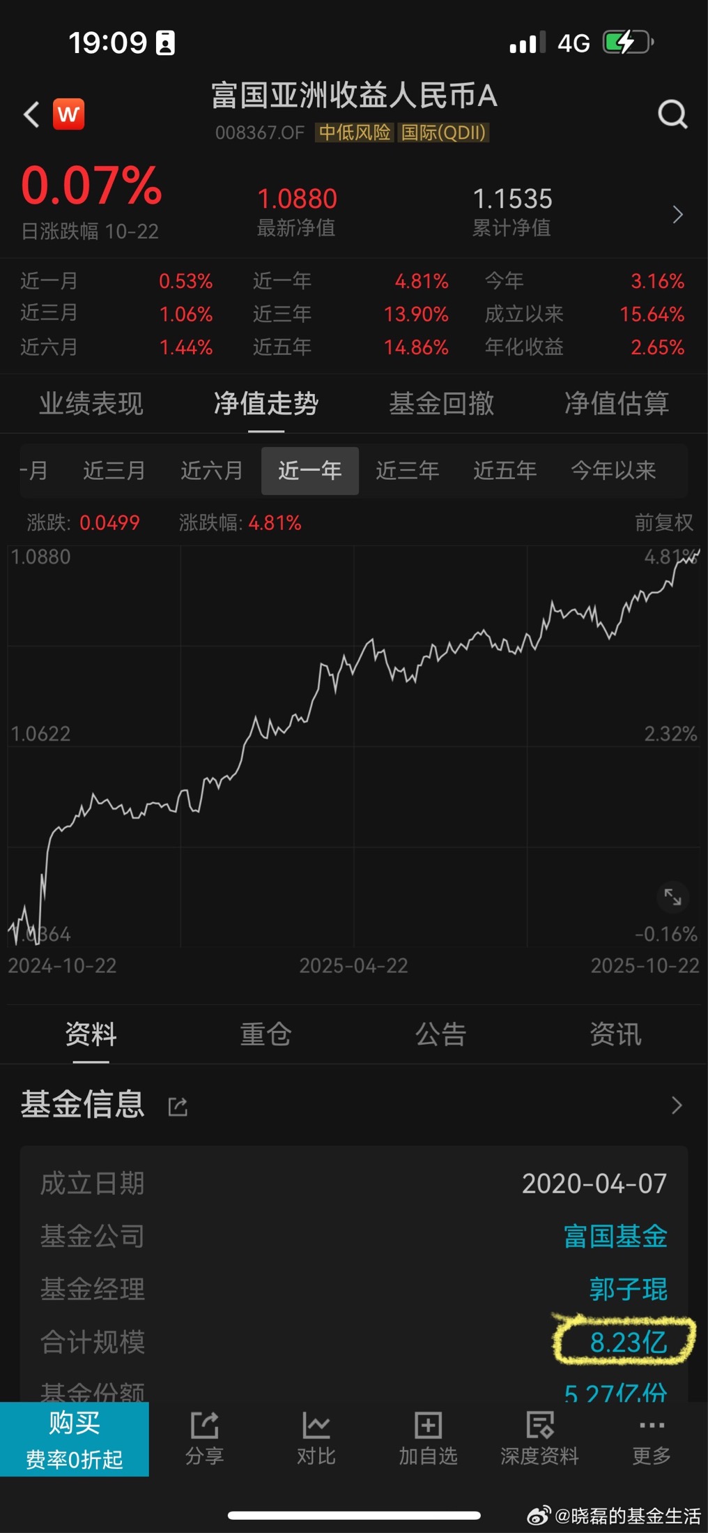 刚查了一下最新数据,按照中报的份额口径,$富国亚洲收益债券(QDII)人民币A$ 的规模是8.23亿