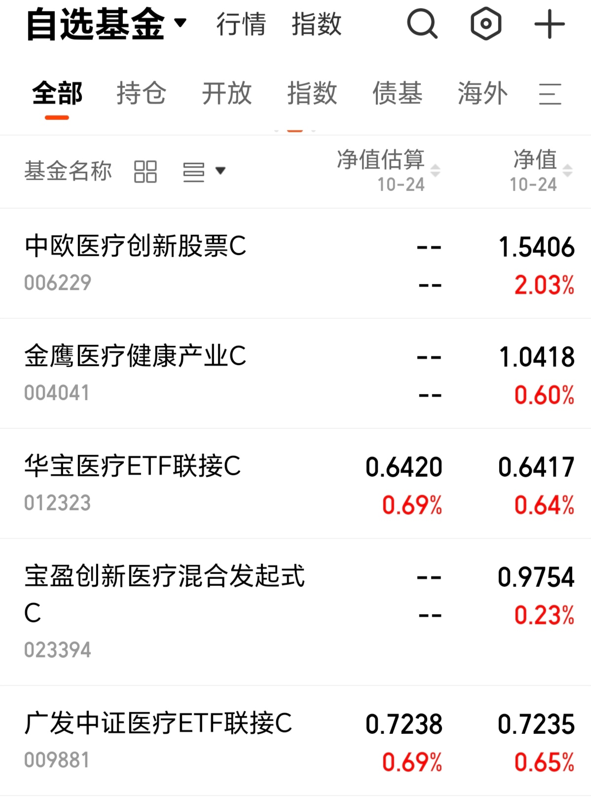 $中欧医疗创新股票C(OTCFUND|006229)$上涨2.03%