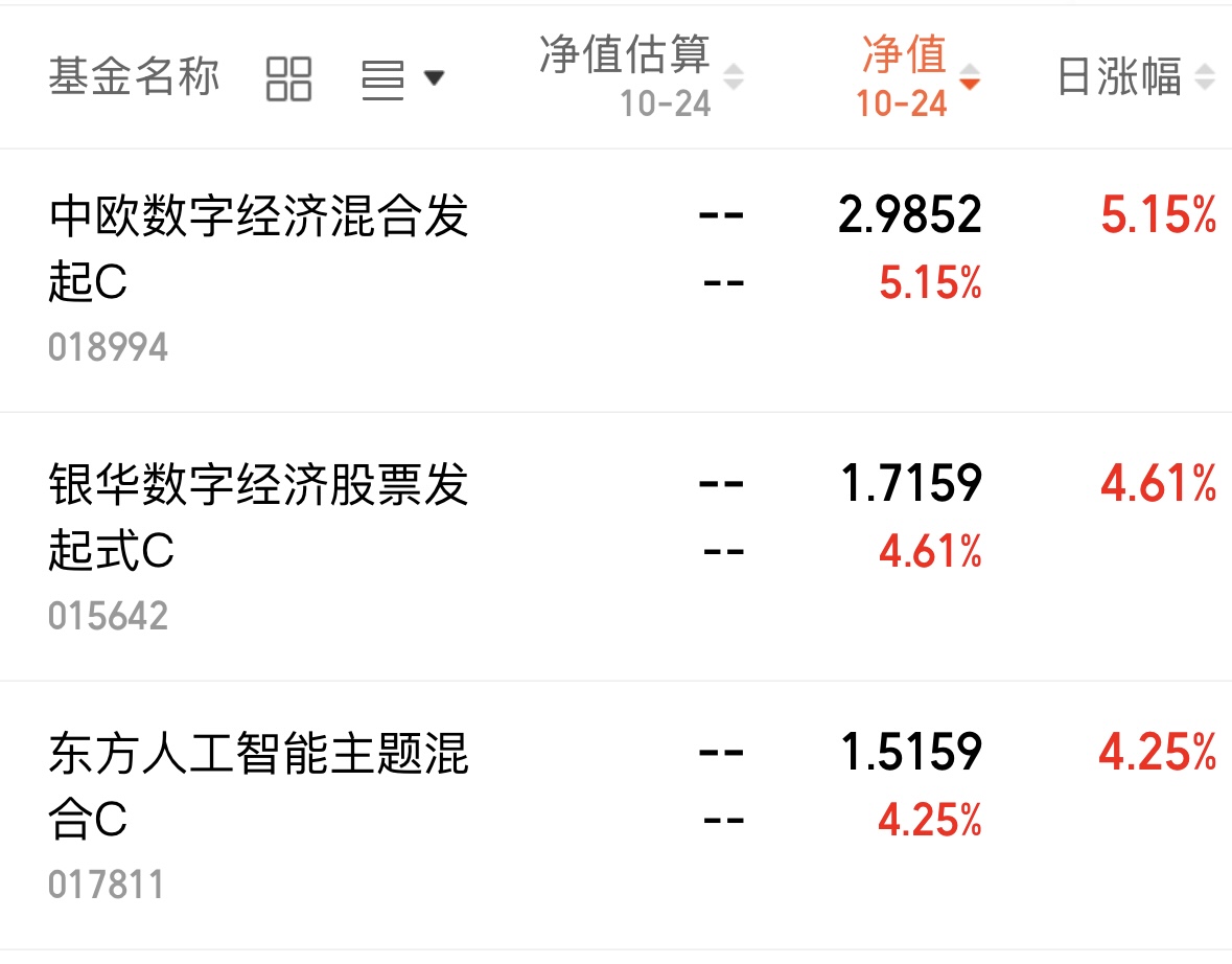 $银华数字经济股票发起式C(OTCFUND|015642)$+4.61%,$东方人工智能主题混合C(OTCFUND|017811)$+4.25%