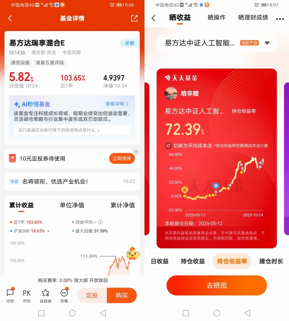 我在#热点快闪:成长板块何时修复?# 选择政策积极信号。成长板块沐浴政策春风,我在长期持有$易方达中证人工智能主题ETF联接C$ 的基础上,正欲择时申购成长基金$易方达瑞享混合E$ 。理由有二:一是春风又暖成长板块。前段时间成长板块在大幅上涨后明显回调,正常现象。近日,《中共中央关于制定国民经济和社会发展第十五个五年规划的建议》提出打造航空航天等新兴支柱产业;还要前瞻布局量子科技等未来产业,10年将再造一个中国高技术产业。这些产业是成长板块的主力军和生力军。有诗云:“好风凭借力,送我上青云。”国家创新育新的政策暖风频吹成长行业,将不断壮大新兴产业和未来产业,将会催生巨大规模的市场。成长行业正在修复,必将突破新高,直上云霄,是投资的新蓝海。二是投资$易方达瑞享混合E$ 更好。因为易方达基金公司管理团队投研前瞻敏锐,能及时发现科技行业的投资机会,能及时捕捉投资科技标的。$易方达瑞享混合E$ 是主动型管理基金,能更完美地体现易方达基金公司管理团队的管理能力,能更充分地让投资者分享成长行业发展的巨大红利。从近1近的统计数据看,该基金取得了超过103%的收益率,十分优秀,跑赢同类指数基金,领跑同类基金。因此,趁回调申购$易方达瑞享混合E$ 正当时,静待成长板块完成修复并突破新高,直上云霄!