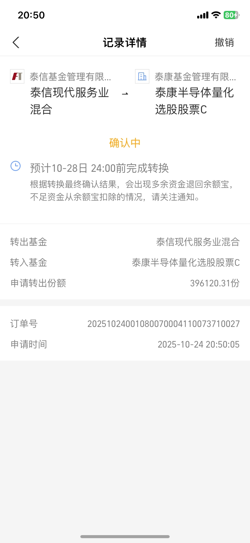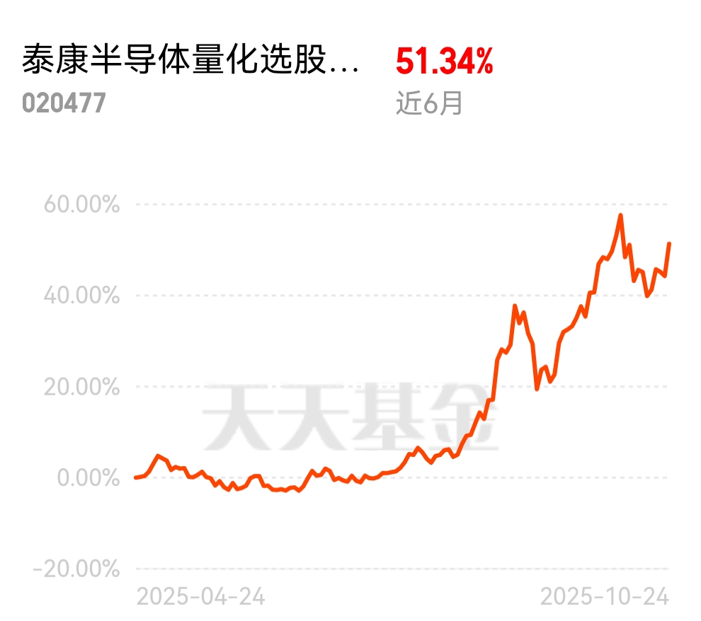 今天我从新能源转换加70万到$泰康半导体量化选股股票发起式C$ ,持仓半导体龙头等大资金抱团方向,更能规避风险,近1年涨了69.42%,超预期的收益,相对多数板块,已经明显多赚!
