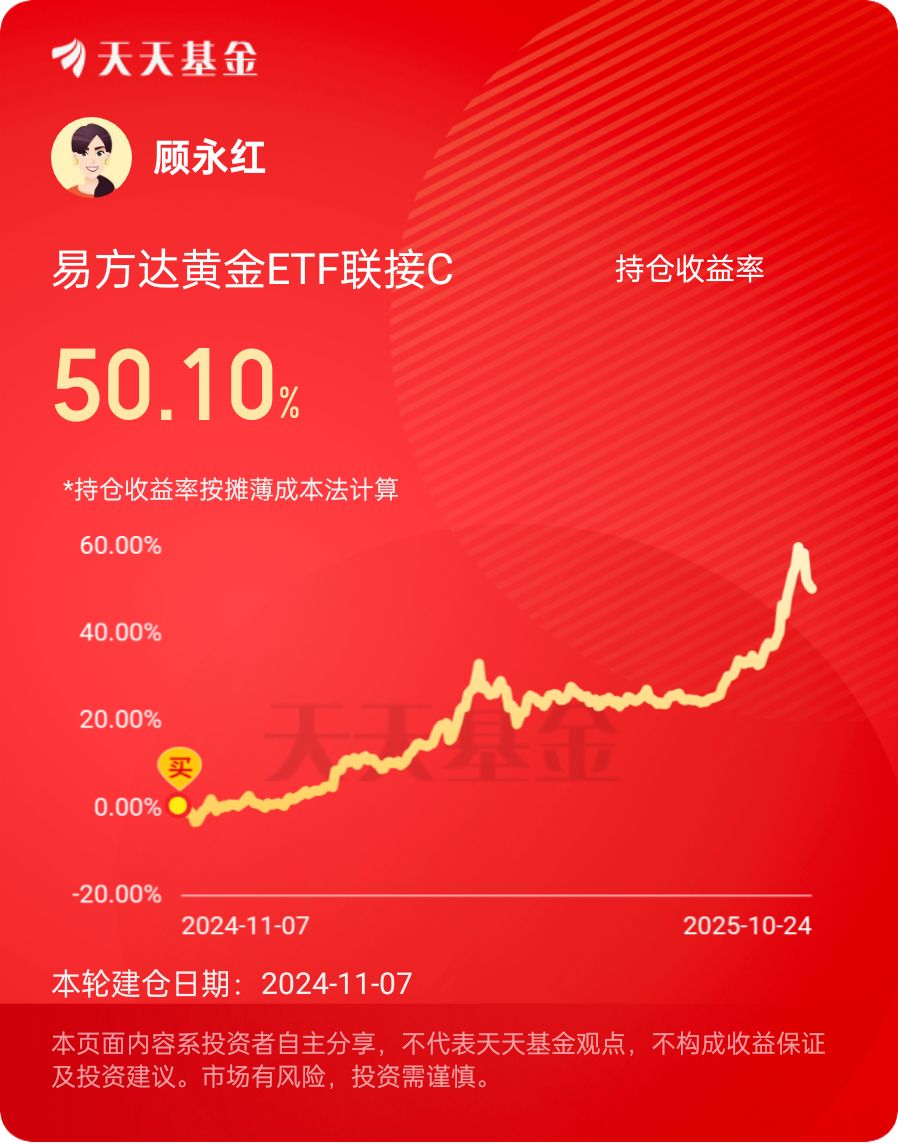 我是易方达基金长达20年的忠实粉丝,截至目前,定投持有十多只易方达的基金,包括$易方达黄金ETF联接C$ $易方达中证红利低波动ETF联接发起式A$ $易方达港股通红利混合A$$易方达恒生科技ETF联接(QDII)A$ $易方达纳斯达克100ETF联接(QDII-LOF)A(人民币)$ $易方达增强回报债券B$ 等,对收益回报和持有体验感到非常满意!我会继续配置易方达基金产品,坚持定投,坚定持有!@易方达基金