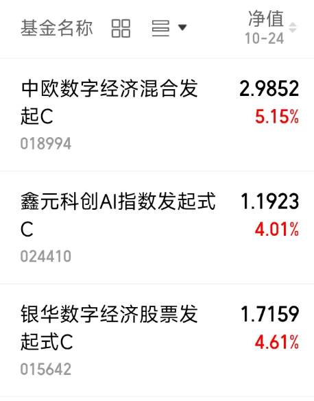 $中欧数字经济混合发起C(OTCFUND|018994)$+5.15%,涨势喜人
