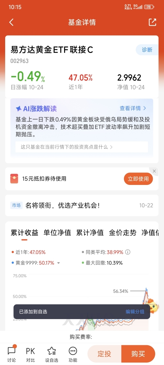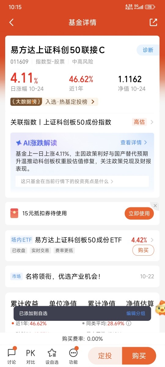 我将下一步进一步的加仓$易方达上证科创50联接C$