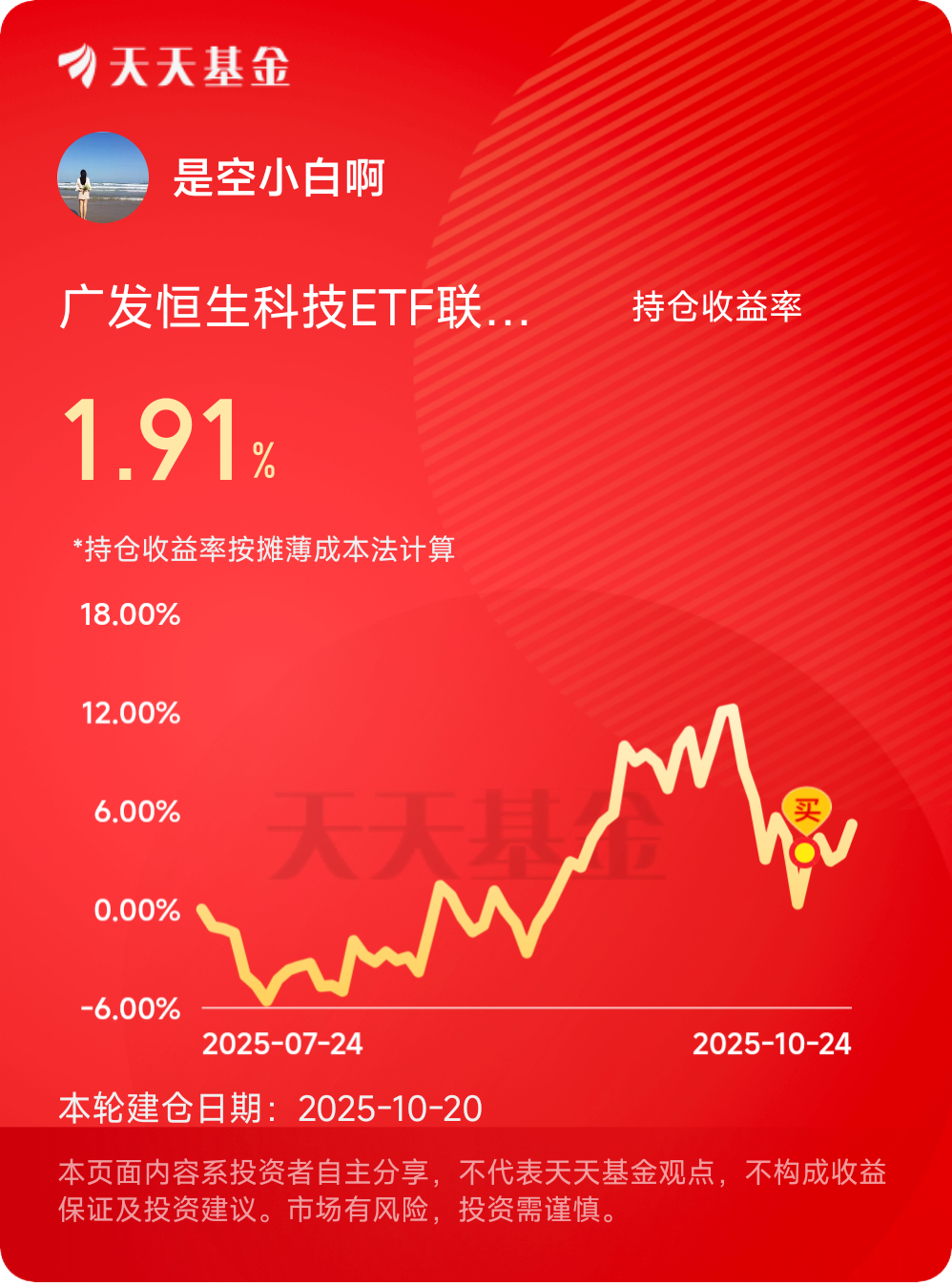 $广发恒生科技ETF联接(QDII)C$ #晒收益# 成功抄底,继续格局,位置够低,安全边际够高,继续安心持有!