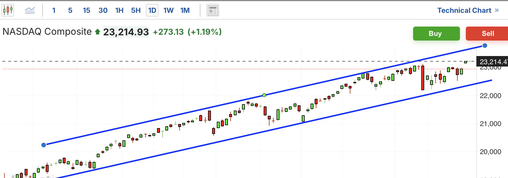 周五上半场,美股指数集体飙升。近期三大指数进入上升通道,此前守住关键支撑位,并止跌回升,逐渐靠近通道压力位,目前走势仍较健康,暂时还没有超买或回调迹象。