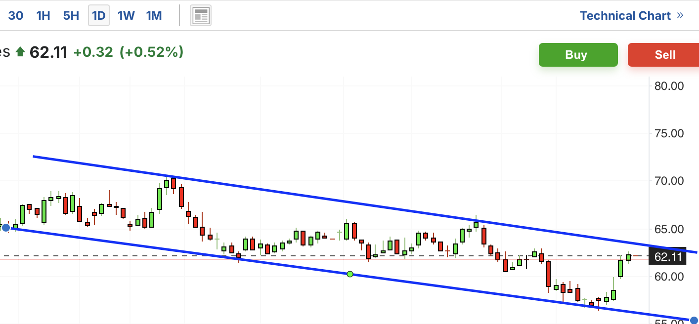 本周多家石油服务公司财报超预期:TechnipFMC (FTI) 第三季度收益增长17%,销售额增长13%,至26.5亿美元。贝克休斯 (BKR) 每股收益和销售额略高于预期。瓦莱罗能源 (VLO) 第三季度利润增长221%,营收下降约2%,股价在50日均线附近上涨。