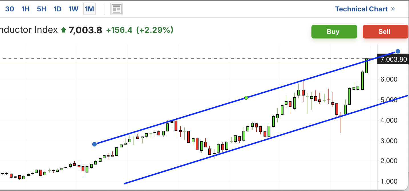 费城半导体近期趋势上行,最近在暴跌后陷入盘整,这两日从支撑位后反弹,突破前高压力位,再次回归上行趋势。从长期趋势看,短期涨幅大,有超买迹象。