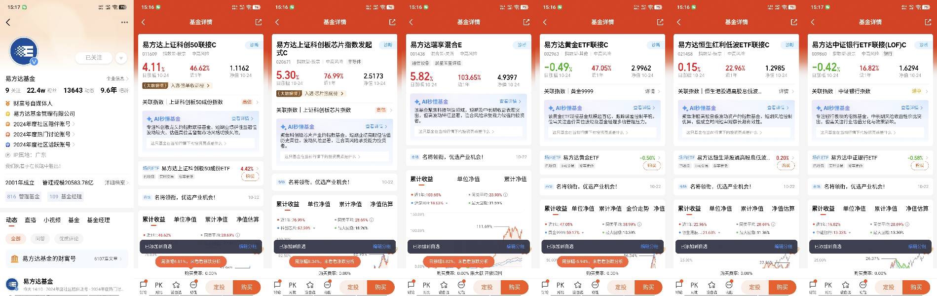 $易方达中证银行ETF联接(LOF)C$ $易方达恒生红利低波ETF联接C$ $易方达黄金ETF联接C$ $易方达瑞享混合E$ $易方达上证科创50联接C$
