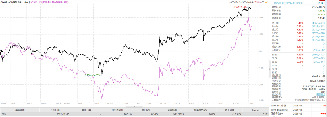 郑玲是很擅长军工的,当年作为管专户的投资总监出山,她的中邮风格轮动和中邮军民融合大放异彩,技惊四座。到国联之后,她延续了专户的绝对收益思维,把回撤控制作为重中之重。我觉得所谓的价值风格并不是等同于投资老登股,如果是成长股,只要它估值低于它应该有的价值,赚的是估值修复的钱,就可以是价值投资。所以大家不要把低估值等同于价值风格,就好像严格意义来讲高股息也不能代表红利一样。郑玲是最让我放心的基金经理,放心到我不会关心她的持仓,也不关心她的季报。