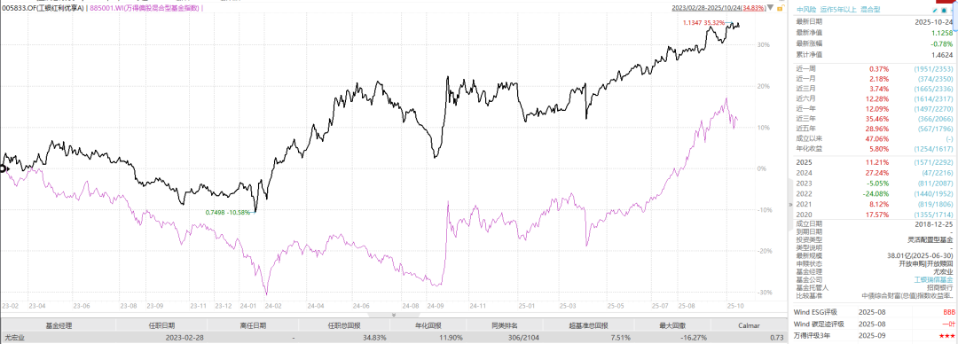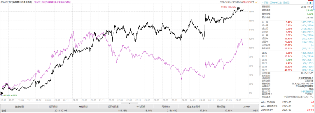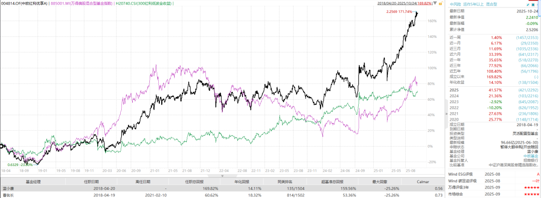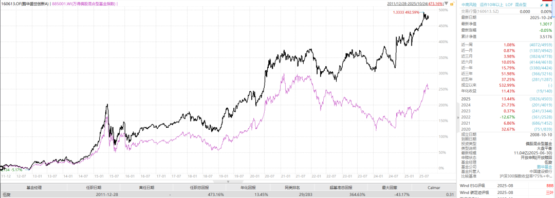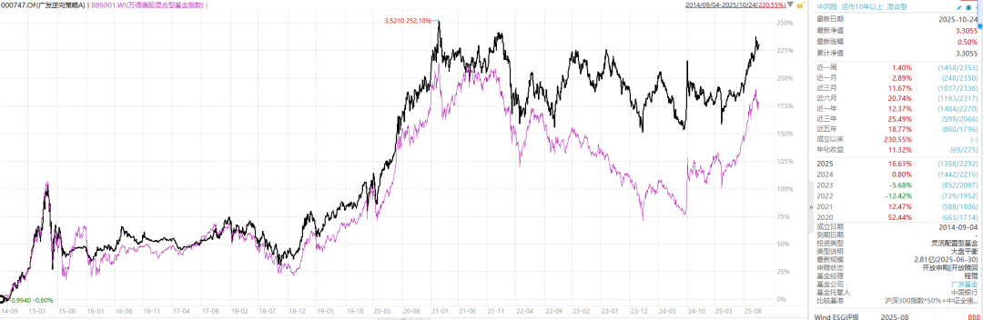均衡逆向价值的代表老将,去年可能有点逆风,今年已经找回来一些感觉,其实看前几年,基本上是年年相对于沪深300指数有超额。管了11年的产品,前五年一直跟偏股混跟得很紧,但波动更低,近五年开始跑出一定超额,回撤更低。