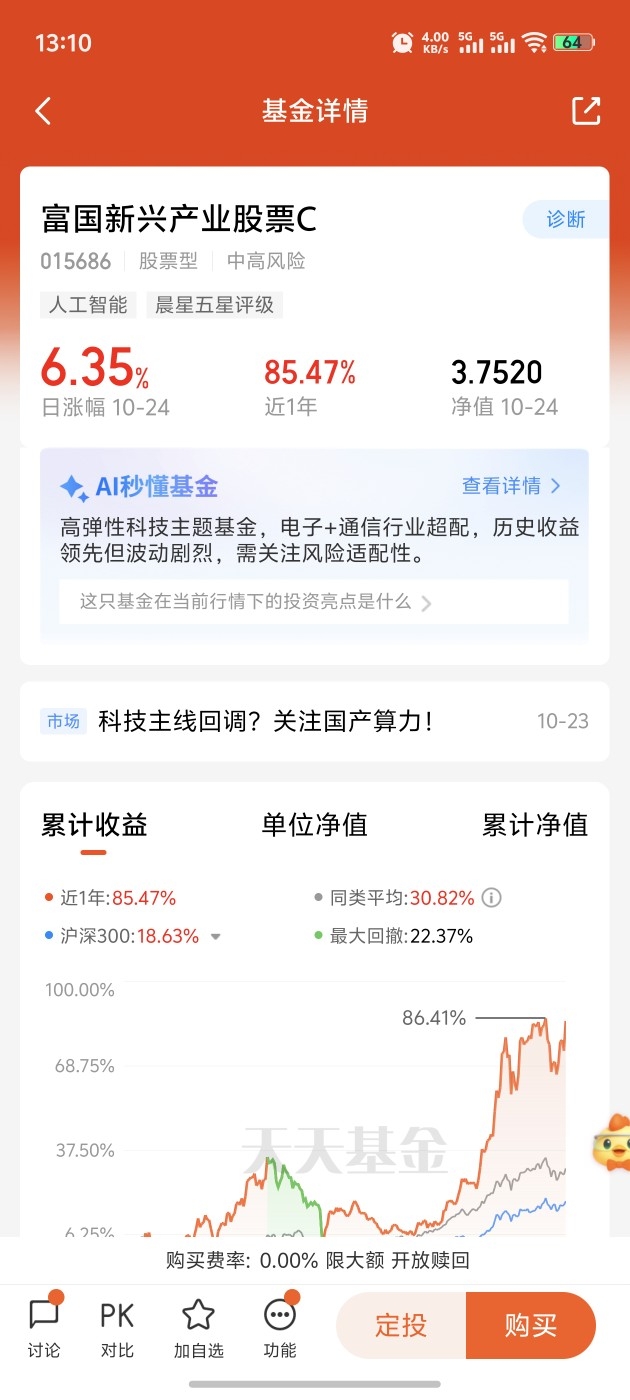 不知道大家都是怎么操作了,我是准备想试试$富国新兴产业股票C$了,这个基金日涨幅