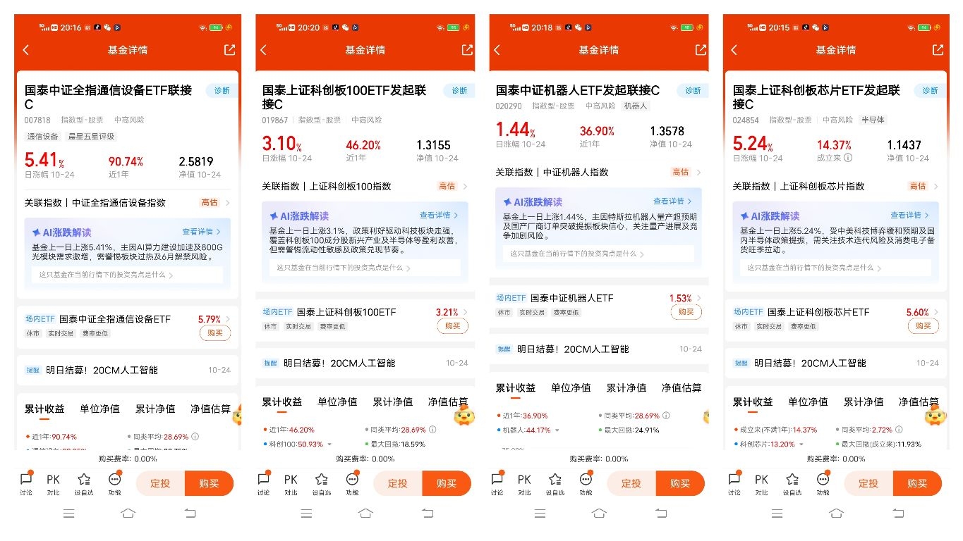 近期已将$国泰中证全指通信设备ETF联接C$ $国泰中证机器人ETF发起联接C$ $国泰上证科创板100ETF发起联接C$ $国泰上证科创板芯片ETF发起联接C$ 等加入自选,持续跟踪关注,并适时开启定投。