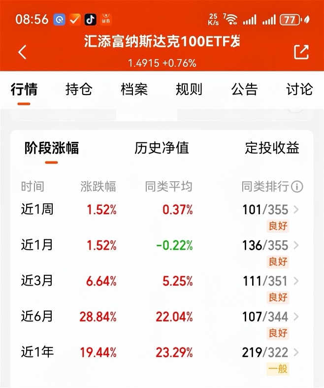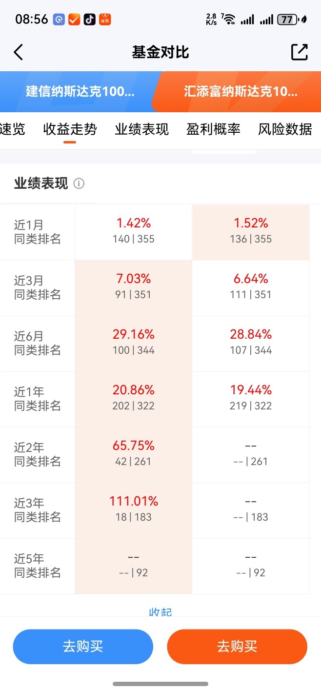 根据观察某信纳斯达克100指数c(qdll),、与某添富纳斯达克100指数E(qfll)基金,这两个美股纳斯达克100指数qdl基金业绩表现对比详细。