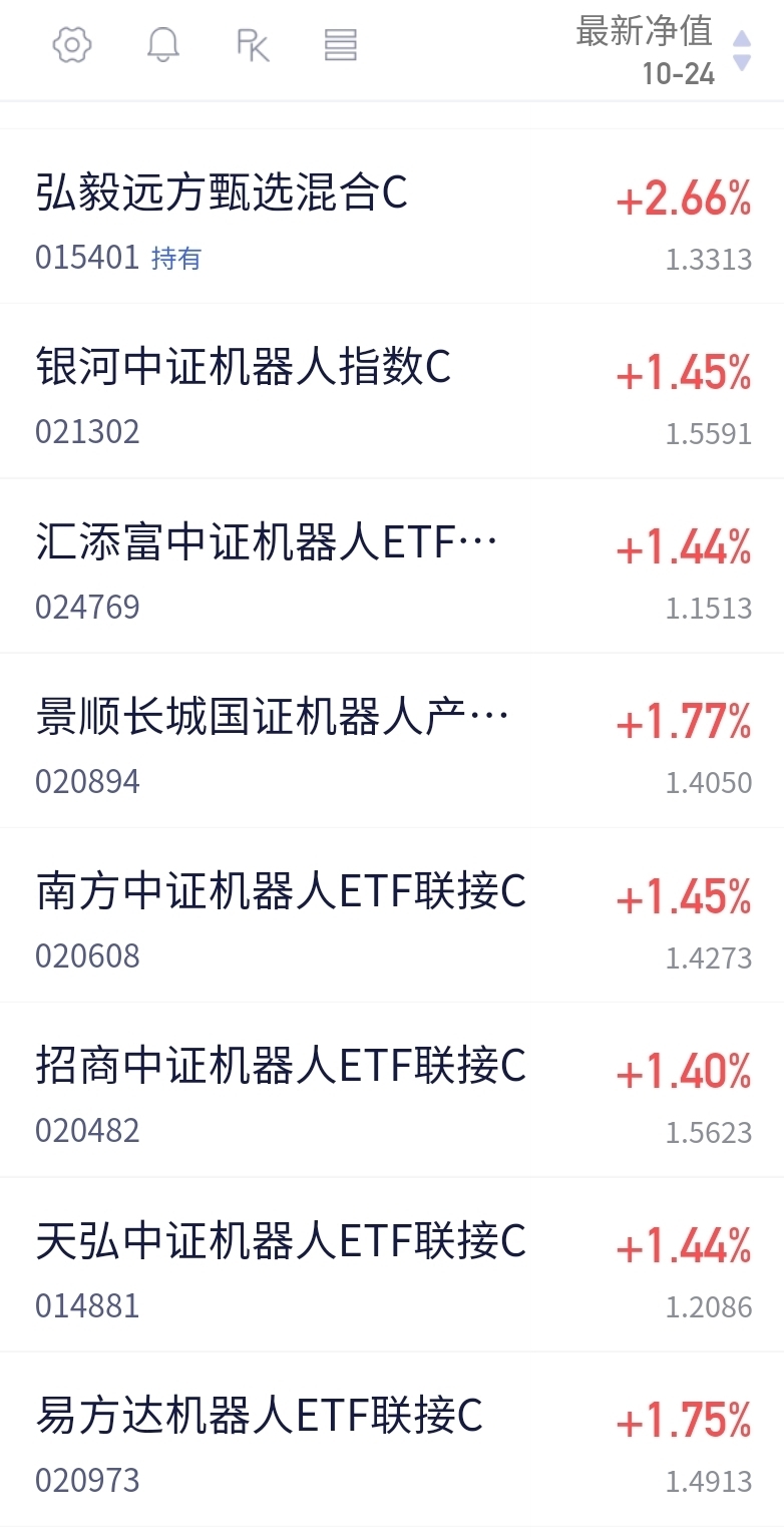$易方达机器人ETF联接C$ 最新涨到1.75%。