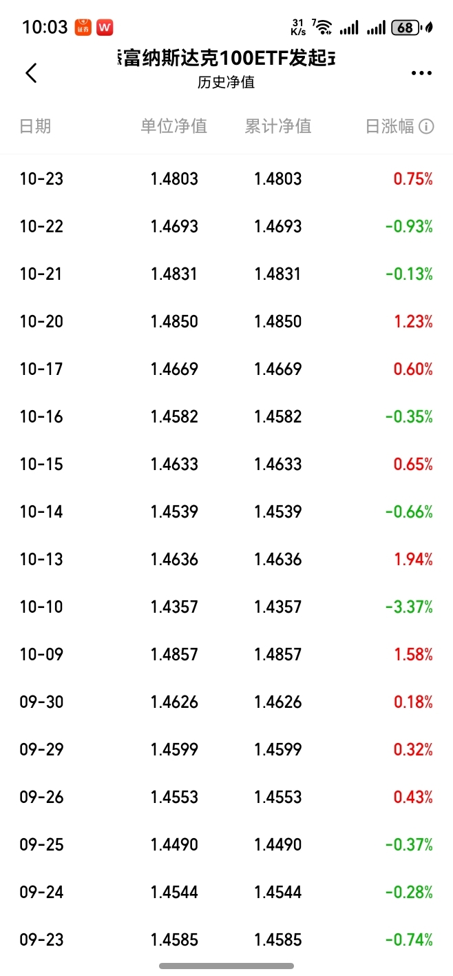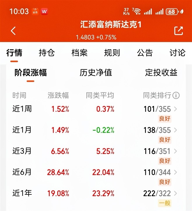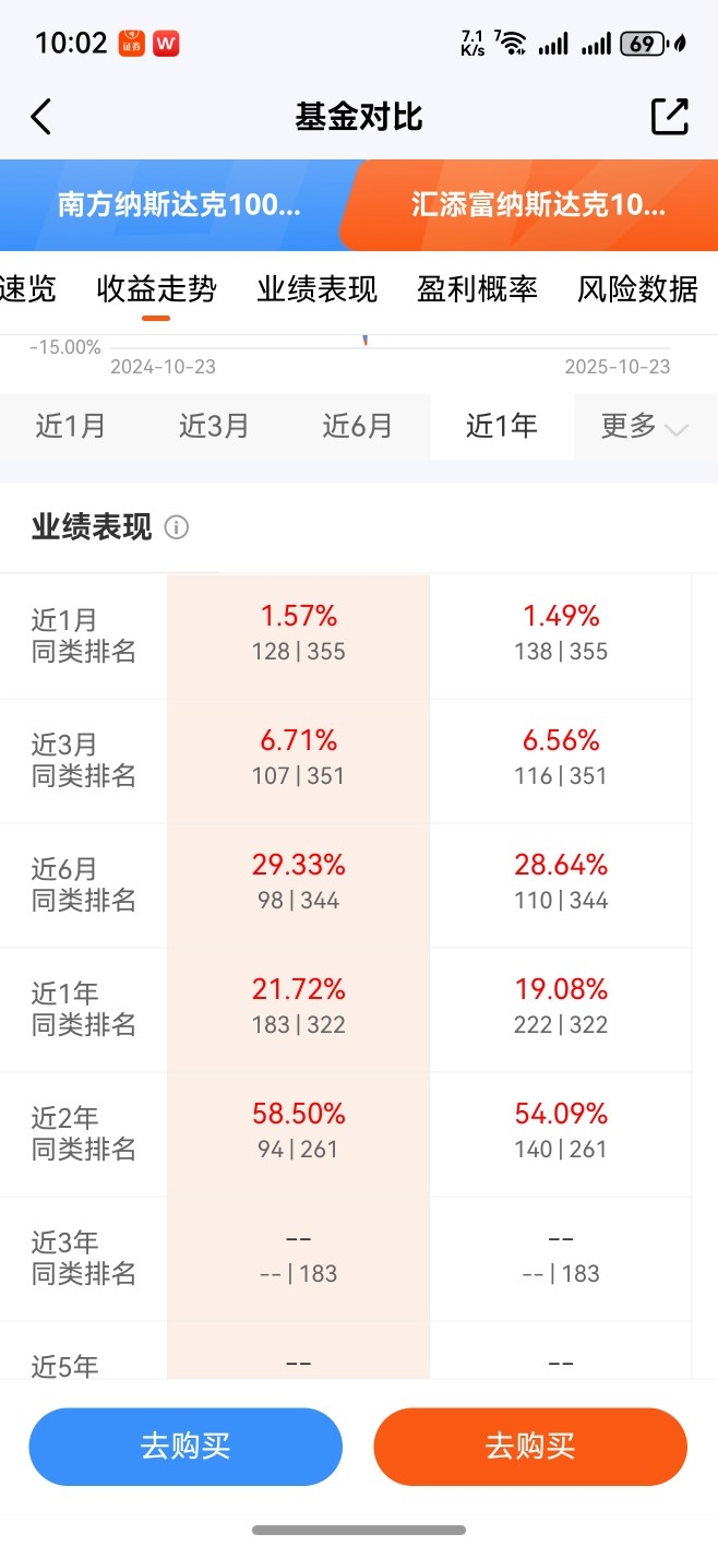 根据对比来,观察某添富纳斯达克100指数qdll基金无论在涨的时候,与在跌的时候,的确也比目前持有的某方纳斯达克100指数qdll基金,要稍微差一些的。