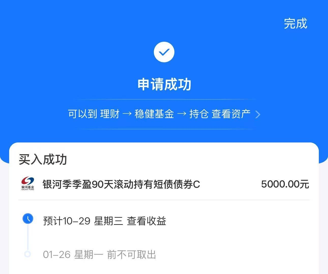 今天债市行情持续震荡,利率债雨天,信用债多云偏晴天,股基波动较大,债基相对稳健,$银河季季盈90天滚动持有短债C$ 该基金持仓结构合理,利率债占比达63.33%,信用债占比36.86%,且只投资于AA+级(含)以上的信用债,其中投资于评级AAA的信用债比例不低于信用债资产的50%。其最大回撤仅0.22%,收益回撤比和夏普比率都远超同类。费用成本低,银河季季盈90天滚动持有短债债券C免除申购、赎回费,降低了投资者的交易成本,提高了实际收益。该基今天估值收蛋2个,近一年收蛋283个,轻松跑赢银行定期利率,资金灵活性较高,该基金设置了90天的滚动持有期,每个开放日都可以申购,今天上车一笔坐等收益。$国金惠安利率债C$ $中信保诚稳达C$