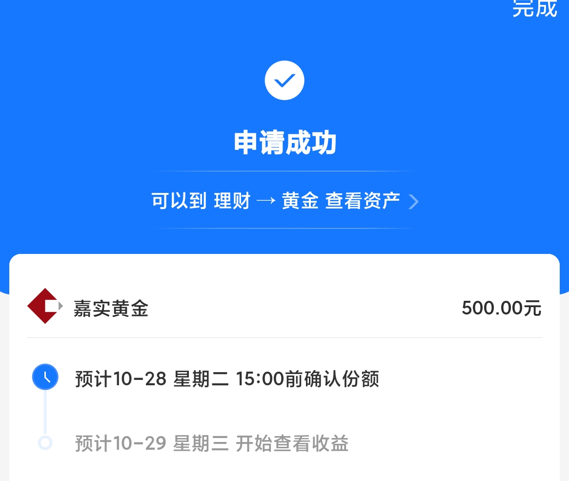 最近黄金波动加剧,回调到了感觉是一个“黄金坑”了,兜兜选择今天加仓200的$嘉实