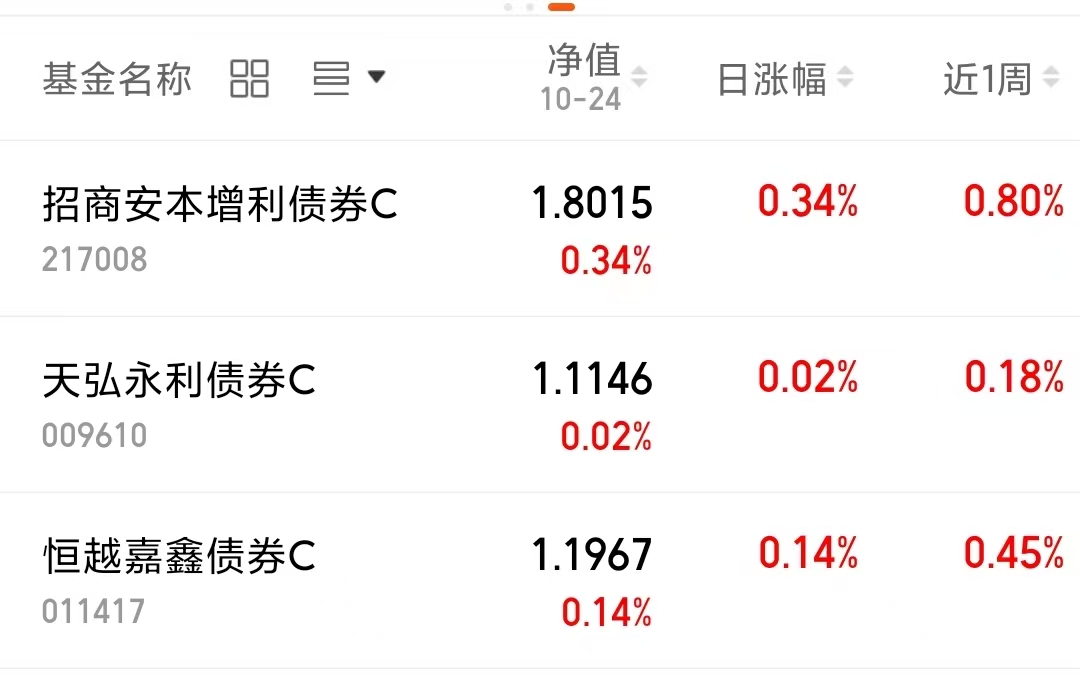 现如今行情回暖,感觉这一波固收+也开始发力了呀~之前买招商的纯债体验还行,后面咱们试试固收+咯,我看$招商安本增利债券C(OTCFUND|217008)$上周五收涨个蛋,这大蛋属实羡慕了呀~