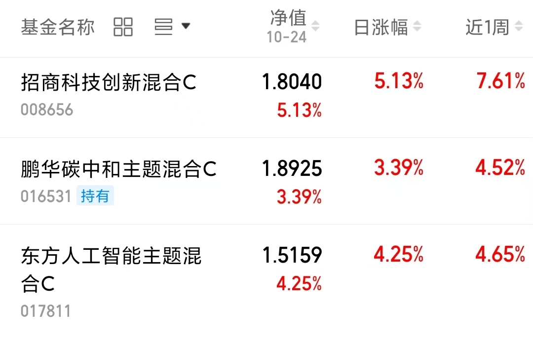 $东方人工智能主题混合C(OTCFUND|017811)$上周五收涨4.25%。