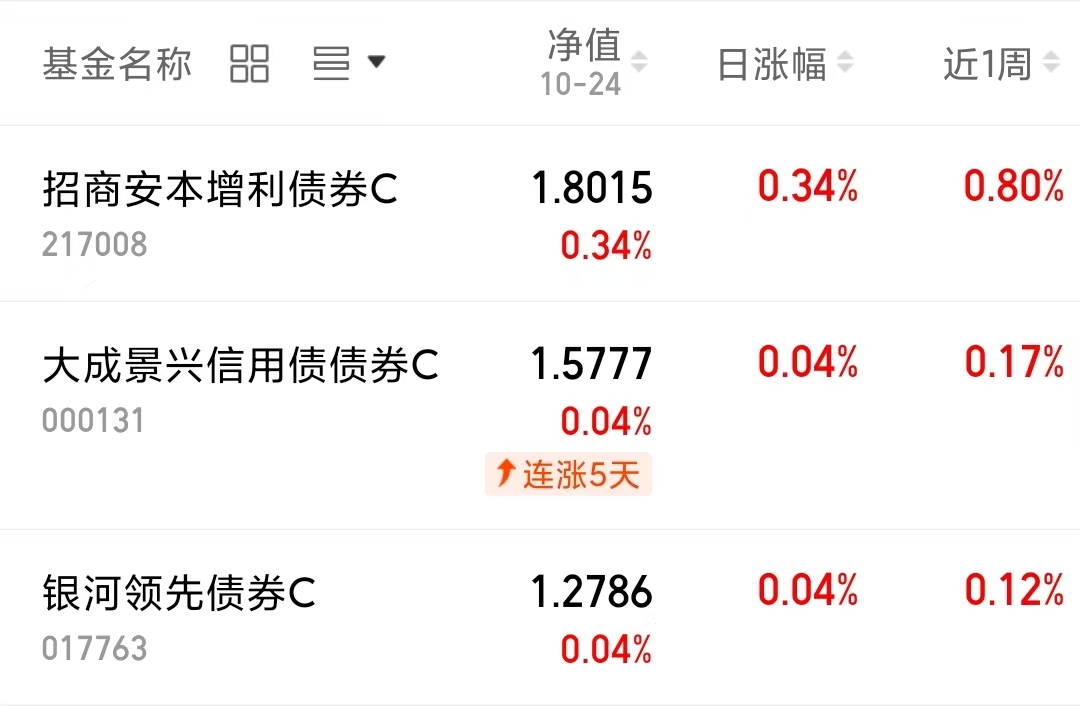 家人们行情震荡,感觉现如今还是要稳健配置一波呀~我看$招商安本增利债券C(OTCFUND|217008)$上周五收涨34个蛋,感觉权益基回暖的时候固收+表现也会不错吧~